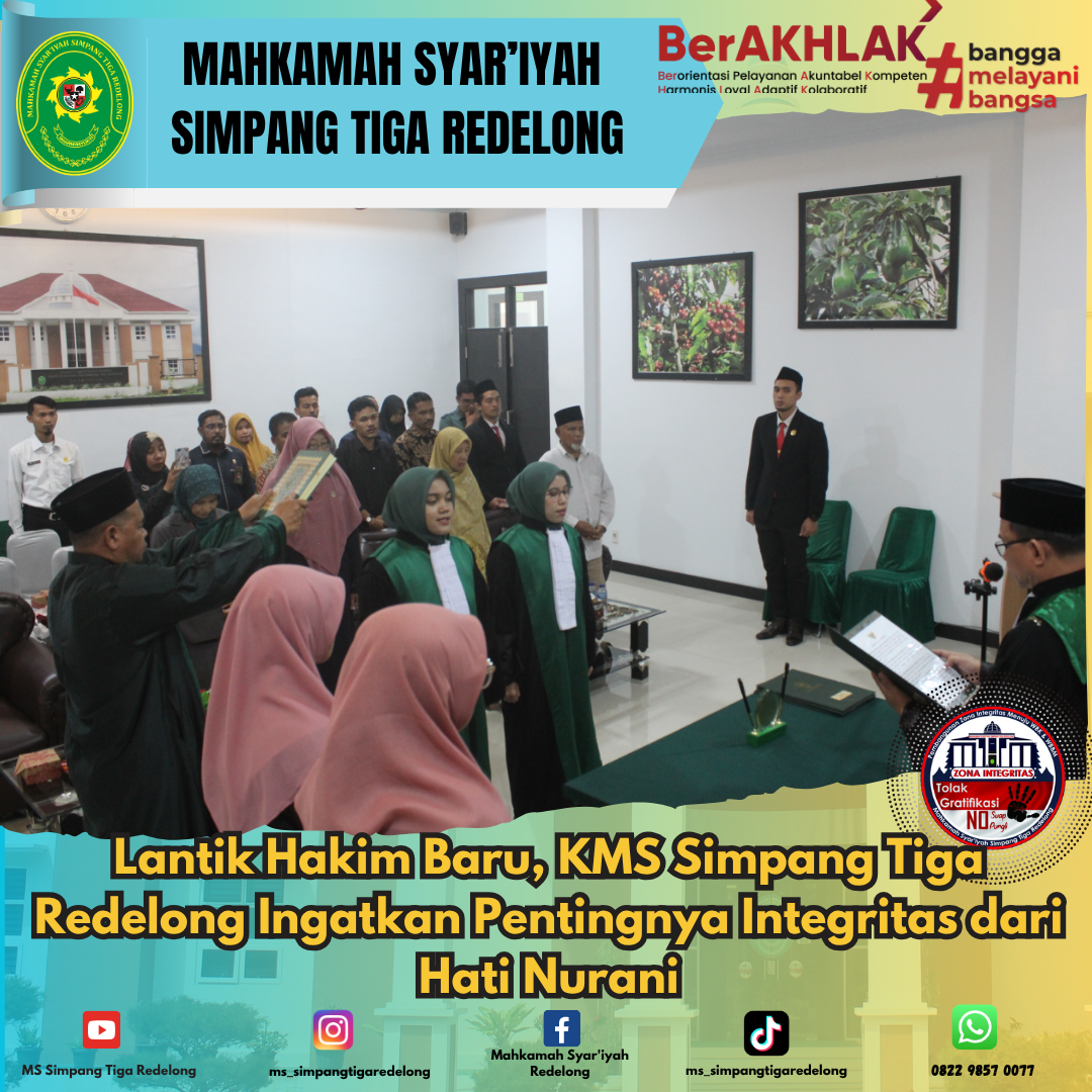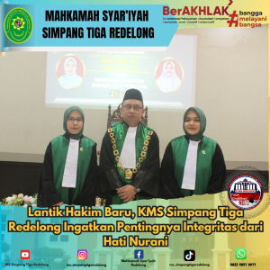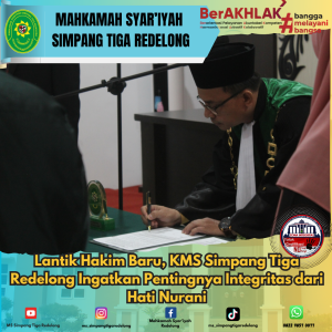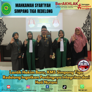 MS Simpang Tiga Redelong memperoleh tambahan dua hakim angkatan baru, yang telah menyelesaikan pendidikan dan pelatihan calon hakim pada tahun 2025. Sebelum mengambil sumpah hakim tersebut, Ketua MS Simpang Tiga Redelong mengingatkan, sumpah yang akan diucapkan mengandung tanggung jawab besar. Meliputi terhadap bangsa dan Negara, serta terhadap kesejahteraan rakyat. Lebih lanjut, ia juga mengingatkan firman Allah SWT dalam surah Ali Imran ayat 77, bahwa konsekuensi bagi orang yang menukar janji Allah dan sumpah-sumpah dengan harga murah maka akan mendapatkan azab yang pedih di akhirat kelak.